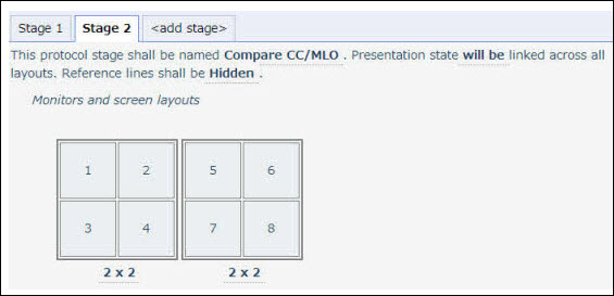 We will now add a comparison stage to the two monitor layout. This stage will contain four CC layouts and four MLO layouts.
