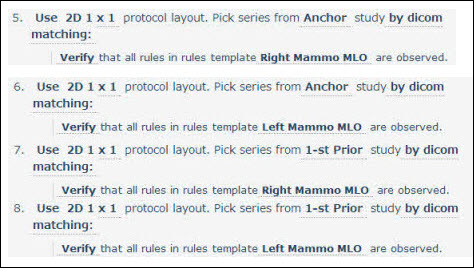 - Repeat these steps for the fourth layout, selecting 1-st prior and the Left Mammo CC rules template.