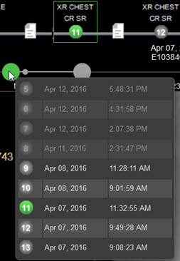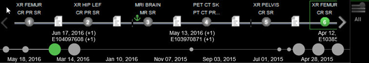 The timeline heatmap is displayed below the patient timeline and shows the entries on a proportional time scale to provide a better overview of the patient's history.
